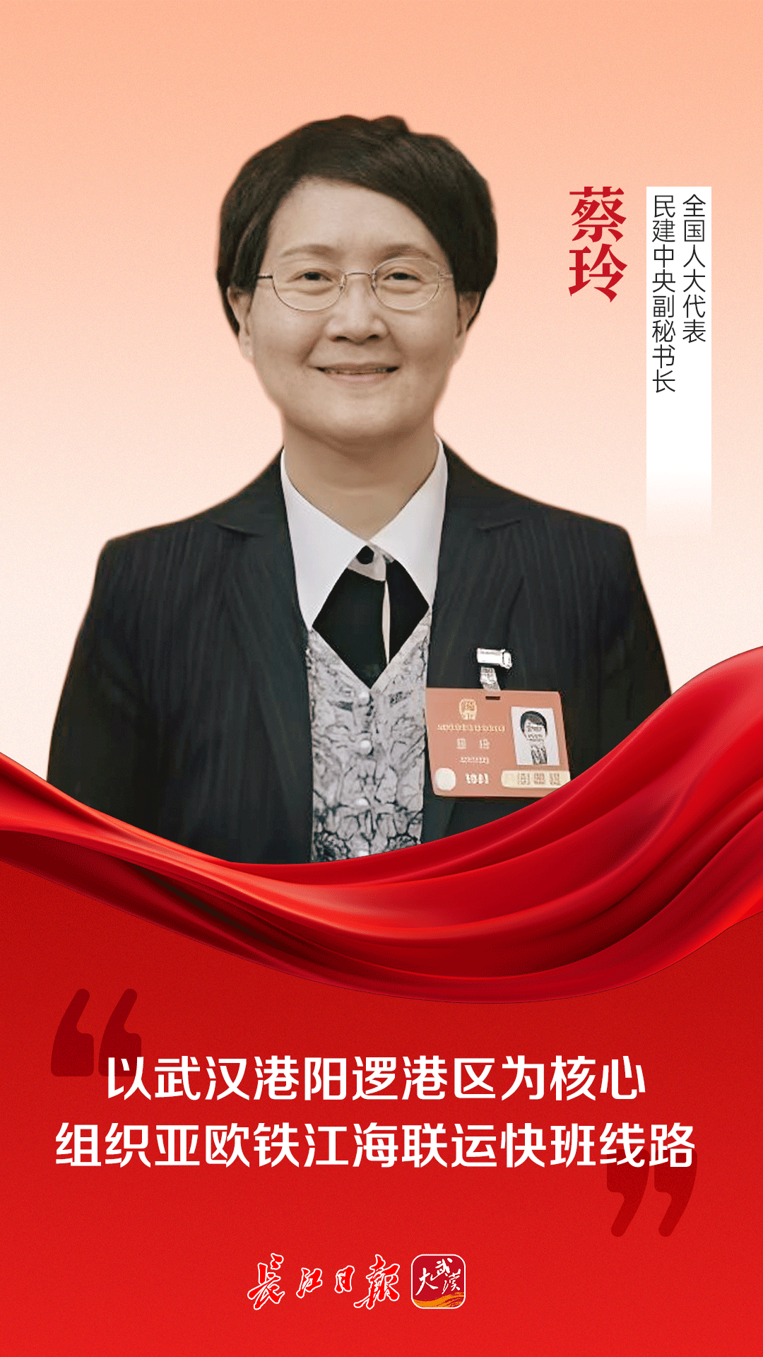 蔡玲长期关注长江经济带发展,实地调研了沿江一些大港口,组织数十场专家座谈。蔡玲说,以武汉“长江中游航运中心”为核心,与长江下游、上游主要港口之间构建“水水中转”“江海联运”体系,为长江经济带协同融通发展、中部地区加快崛起奠定坚实基础。