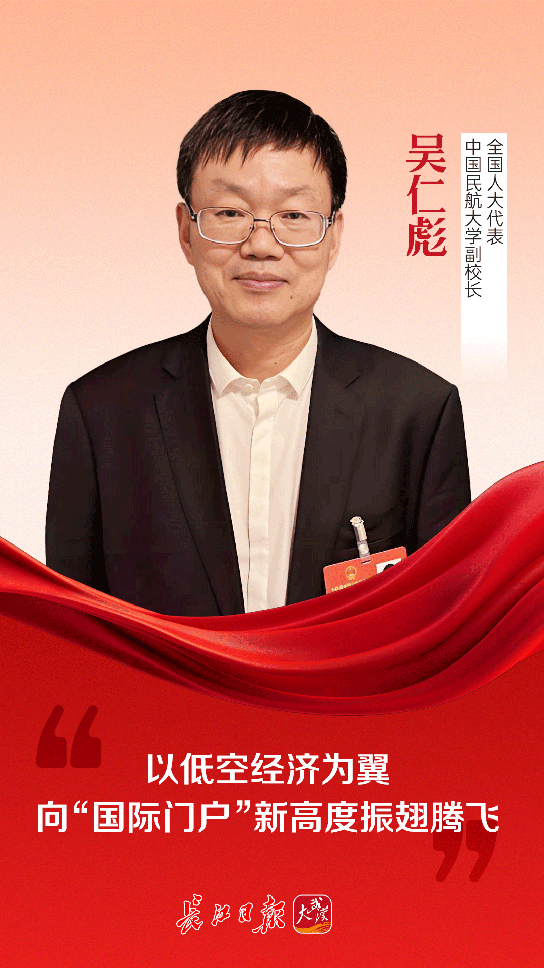 “低空经济”作为战略性新兴产业,连续两年写入政府工作报告,成为全国两会代表委员们热议的焦点。全国人大代表、中国民航大学副校长吴仁彪,家乡在武汉市黄陂区。他认为,武汉可依托“九州通衢”的交通枢纽优势,以低空经济为突破口,布局新赛道。
