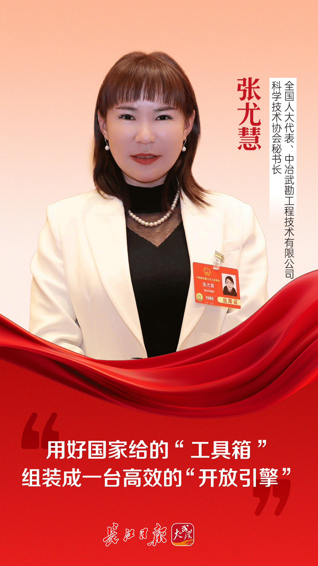“武汉的开放不是‘单打独斗’,而是要用好国家给的‘工具箱’,把交通、产业、政策这些‘零件’组装成一台高效的‘开放引擎’。”全国两会期间,全国人大代表、中冶武勘工程技术有限公司科学技术协会秘书长张尤慧,用生动的语言阐释了武汉打造内陆开放高地的战略路径。她建议,武汉需补齐物流、规则、区域协作和新业态四块“拼图”,推动城市从“内陆腹地”向“开放高地”跃升。