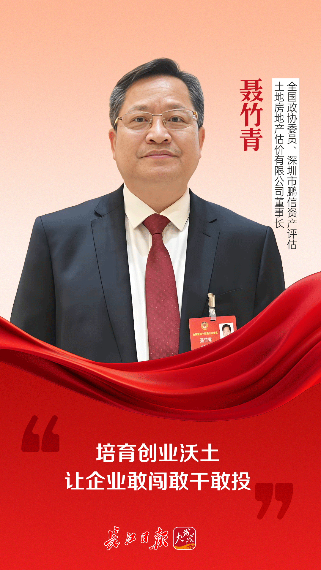 “武汉坐拥九州通衢的黄金区位和水陆空立体交通网络,具有先天优势,在营商环境特别是软环境建设上需实现突破性提升。”3月8日,全国政协委员、深圳市鹏信资产评估土地房地产估价有限公司董事长聂竹青为家乡发展建言献策,就武汉打造内陆开放高地提出建议。