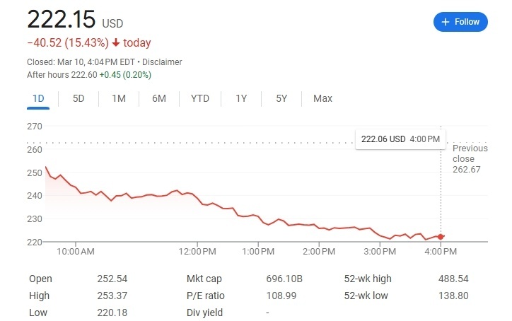 △截至美东时间10日收盘,特斯拉股价跌至每股222.06美元,当日跌幅达15.43%。