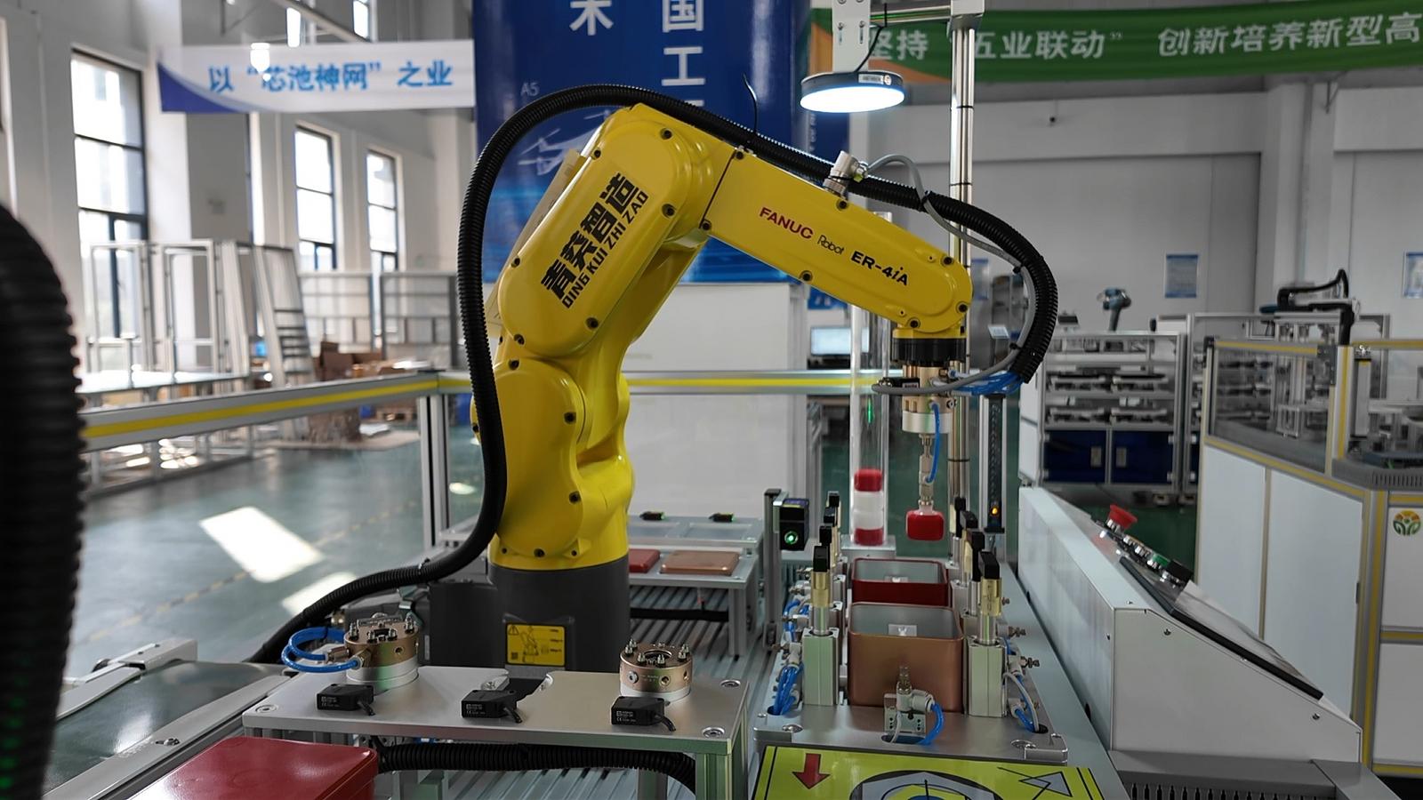 △陈南江与林燕文正在调试是智能柔性产线科教融创平台,预计3月10日交付给北京航空航天大学用于科研。