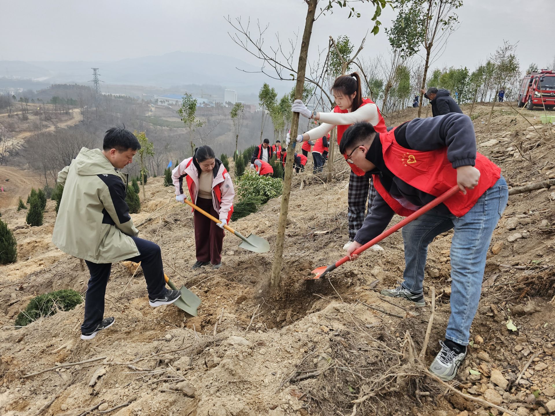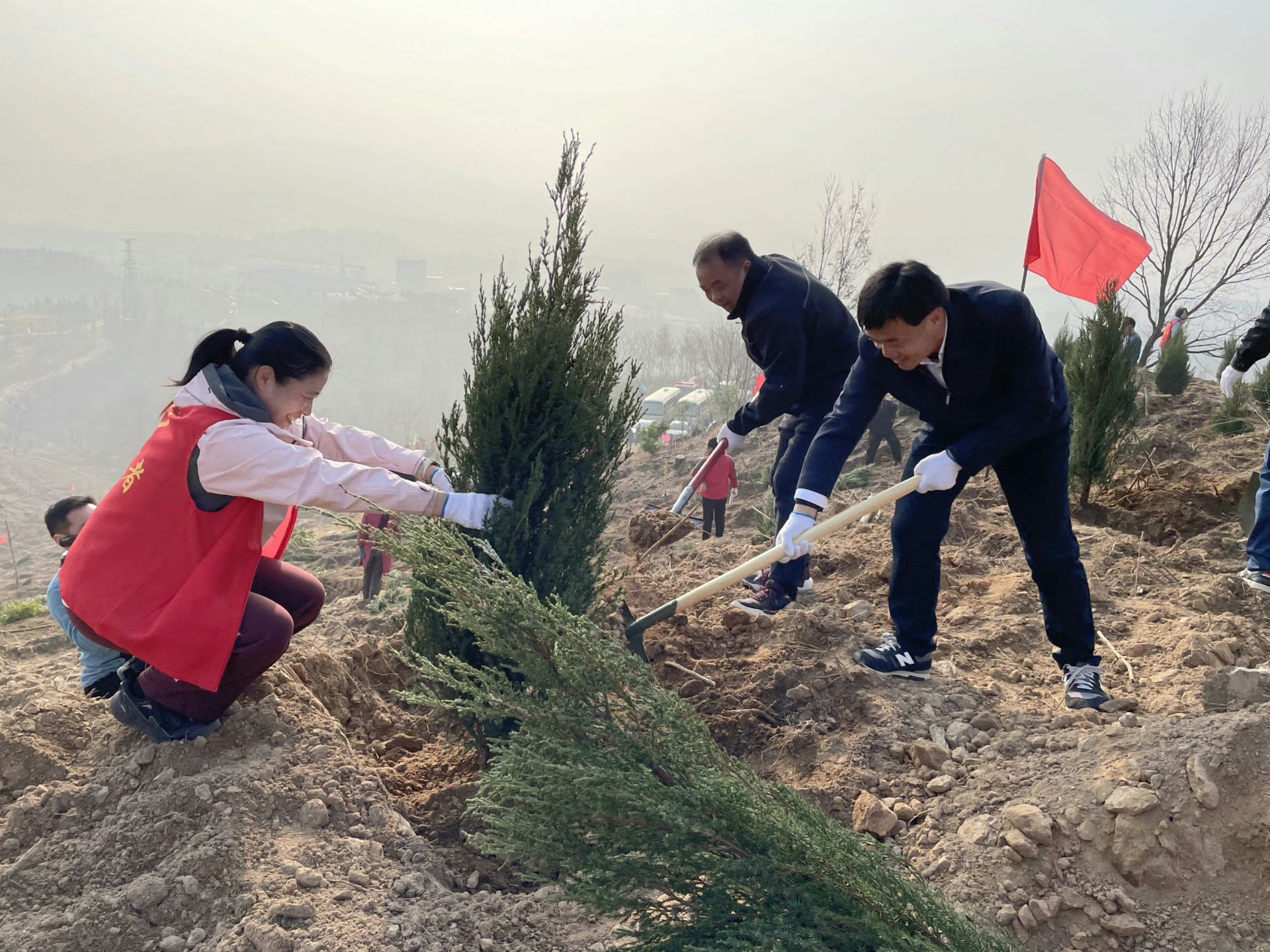 来自全县各单位各部门的党员干部和附近群众组成的3000余名志愿者组成的植树大军,热情高涨,干劲十足,挥锹铲土、扶苗填坑、培土浇水,每一个环节都一丝不苟,每一个步骤都井然有序。一株株新栽下的树苗迎风挺立,展现出勃勃生机。