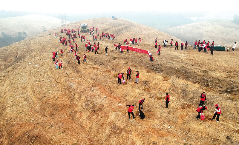 3月11日,团市委组织团员青年到随县澴潭镇开展“美丽随州·青春行动”义务植树活动,以实际行动为建功支点建设贡献青春力量。(随州日报全媒记者徐斌摄)