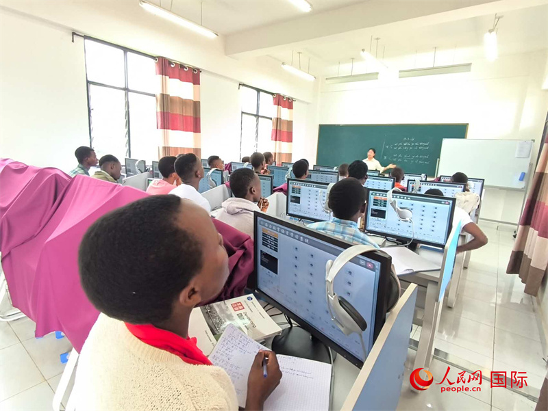 中国老师在给学生们讲课。人民网记者 黄培昭摄