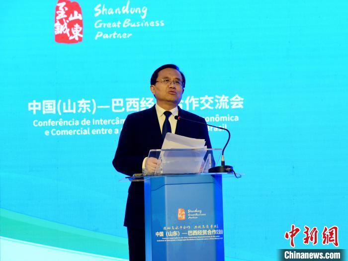 当地时间3月10日,巴西圣保罗,山东省副省长宋军继在中国(山东)-巴西经贸合作交流会上致辞。记者林春茵摄