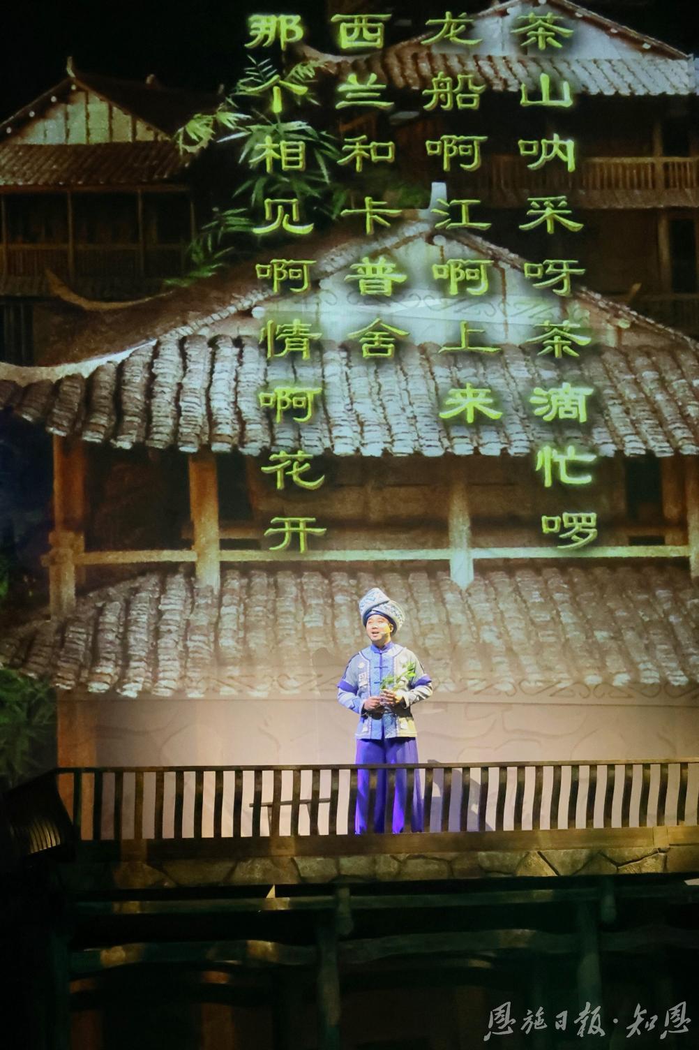 依托恩施本地民歌《门前一口堰》的曲调,民族歌舞剧《西兰卡普》剧组创新设计幕间词,串联整个歌舞剧。