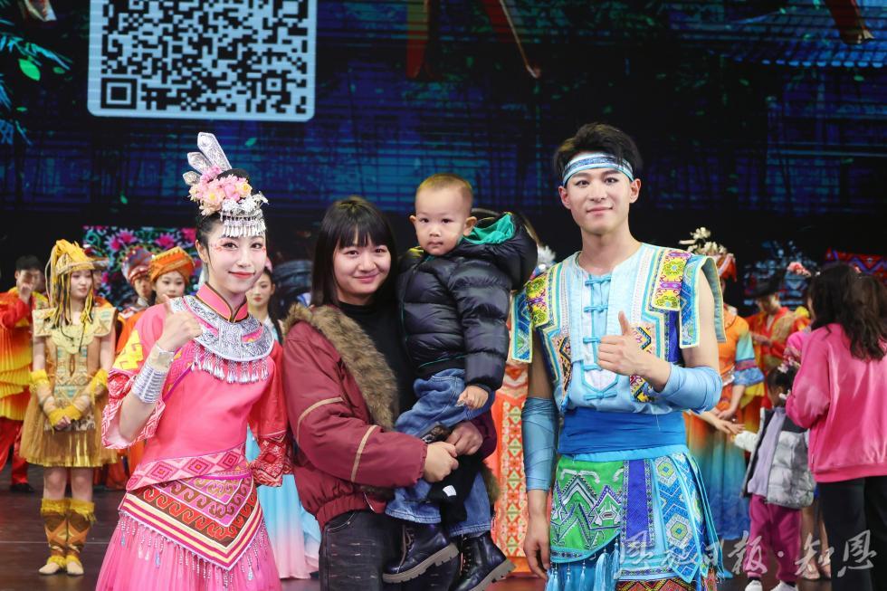 散场后,游客与演员合影。(全媒体记者卢树彬 摄)