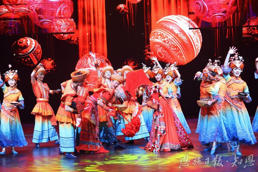 “传统文化必须与时代同呼吸。留住根与魂的同时,要根据时代发展创新表达。”湖北省民族歌舞团团长燕冰说,多项非物质文化遗产项目被巧妙穿插在各个篇章、环节,全景式呈现恩施民族文化,这便是民族歌舞剧《西兰卡普》的魅力所在。