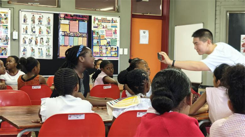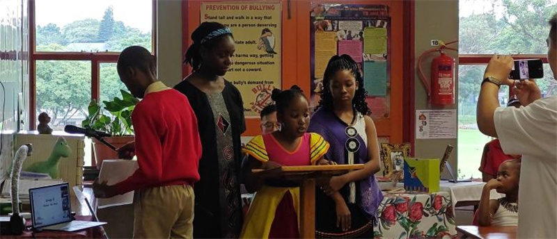 南非学生介绍南非。南非中国文化中心孔子课堂供图