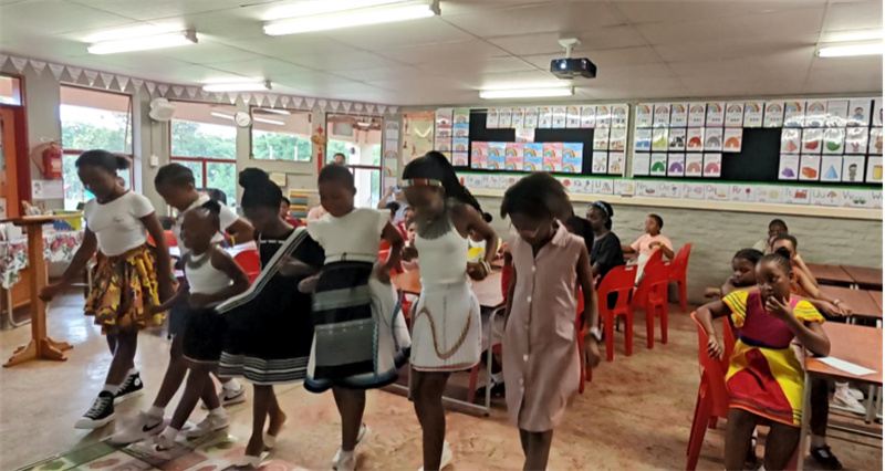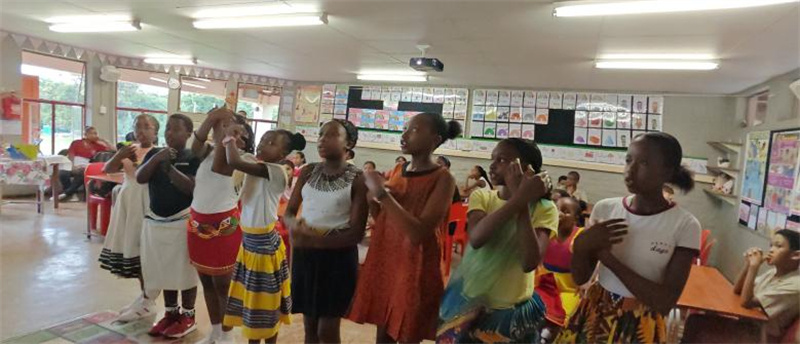 南非学生表演非洲歌舞。南非中国文化中心孔子课堂供图