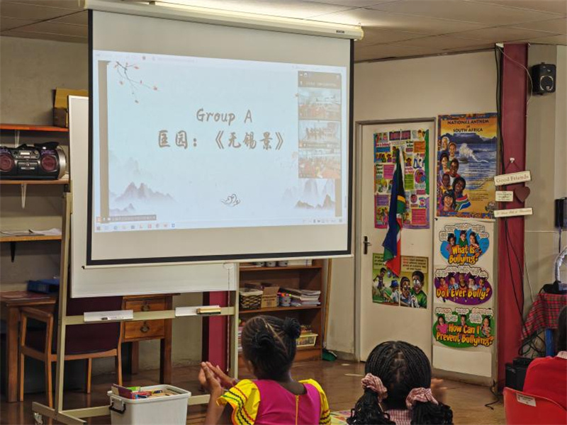 匡园学生介绍无锡景。南非中国文化中心孔子课堂供图