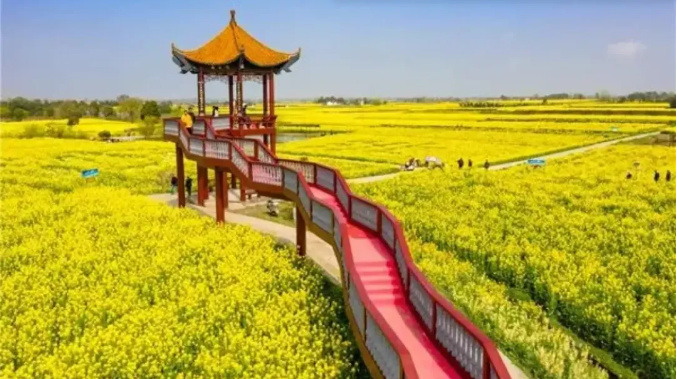 近年来,荆门相继新增沙洋江汉运河油菜花带、钟祥石牌万亩油菜花海、京山永兴观音岩油菜花海等油菜花观花景点,通过农文旅融合,带动当地特色优质农产品销售。