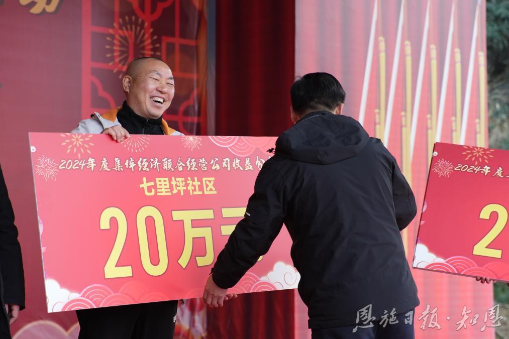 “各村分红20万元,再奖年猪一头!”1月20日,七里坪街道2024年度集体经济联合经营公司分红现场,台上话音刚落,台下喝彩声一片。