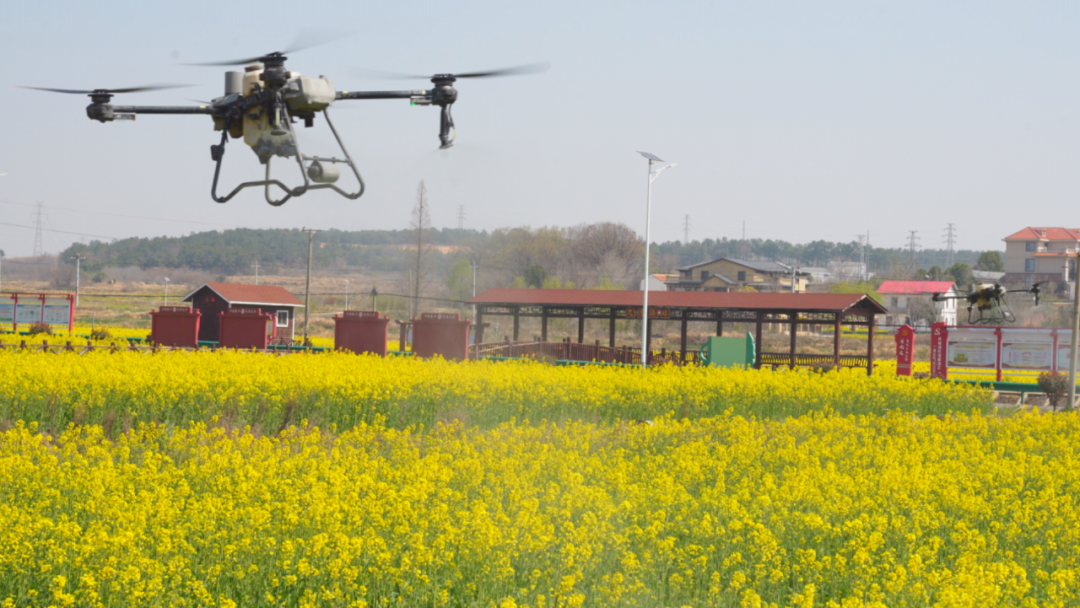 不仅是小麦田间管理,在油菜病虫害防治方面,无人机同样大显身手。随着气温回升,油菜进入盛花期和病虫害高发期。植保无人机对全县30.92万亩油菜进行“一促四防”,将病虫危害损失率控制在5%以内,增加油菜单产,提高种植效益。