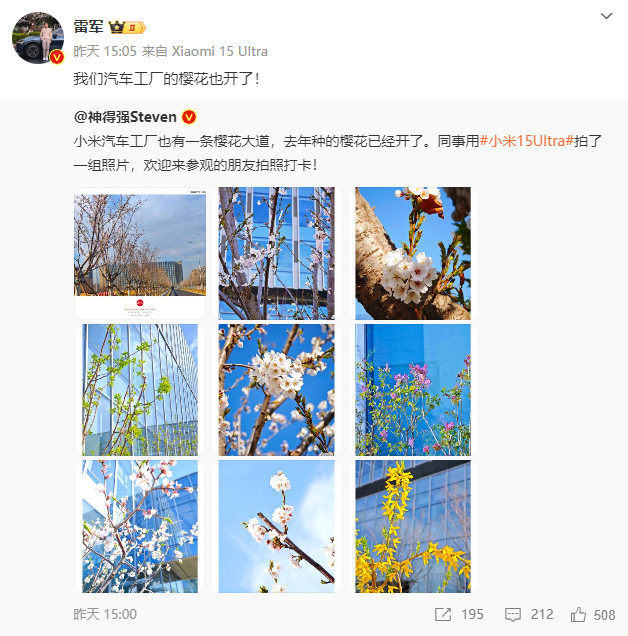 “北京小米科技园樱花也开了。”