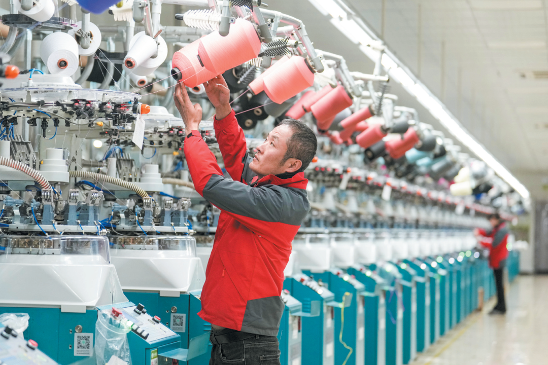 3月23日,在湖北棉伙棉伴智能纺织科技有限公司车间,一排排智能化袜机有序作业,五颜六色的纱线在袜机里上下“翻飞”,就编织出一双双款式新颖的袜子。