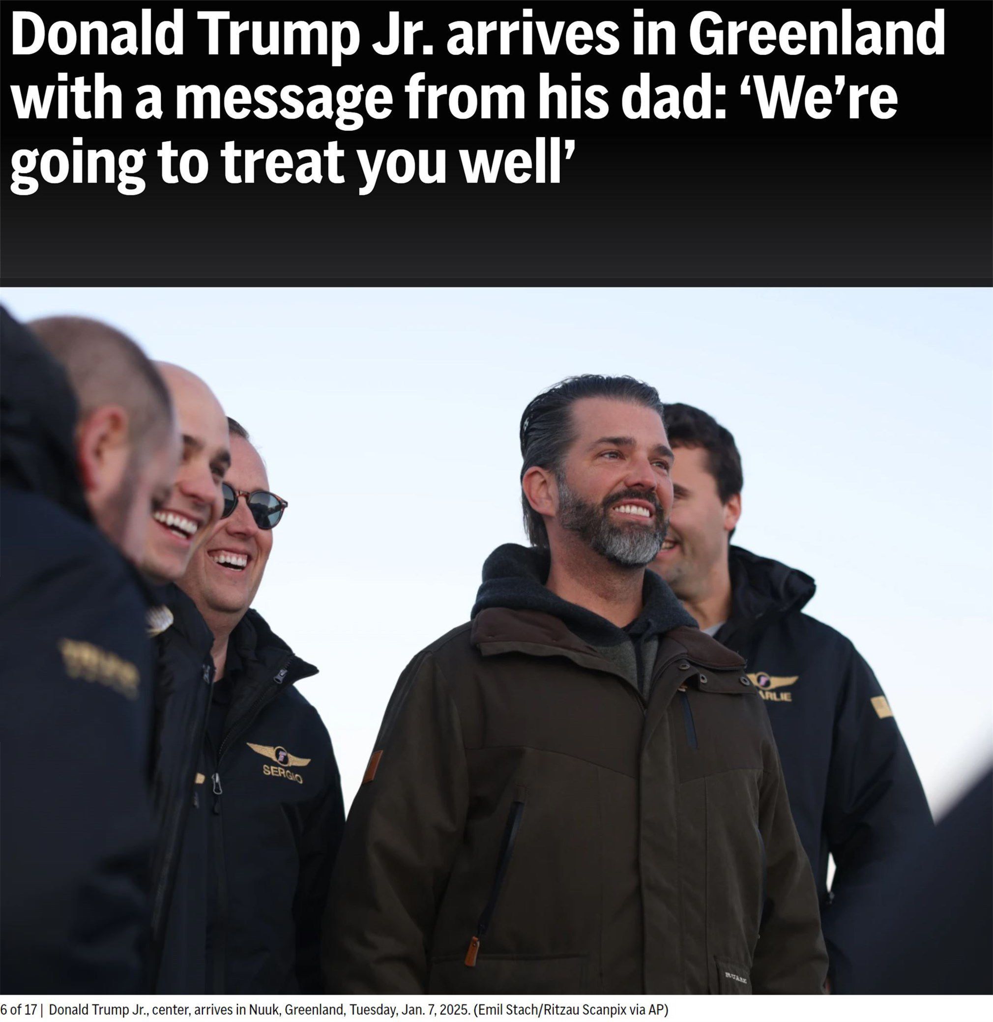 为了让“夺岛”计划早日成真,除了美国代表团不请自来的访问计划,特朗普长子小唐纳德·特朗普早在年初就已经借私人旅游的名头去岛上“打前站”。