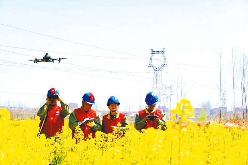 近日,国网随州供电公司运维人员对220千伏卧烈线308号至309号铁塔进行巡检,确保线路安全。