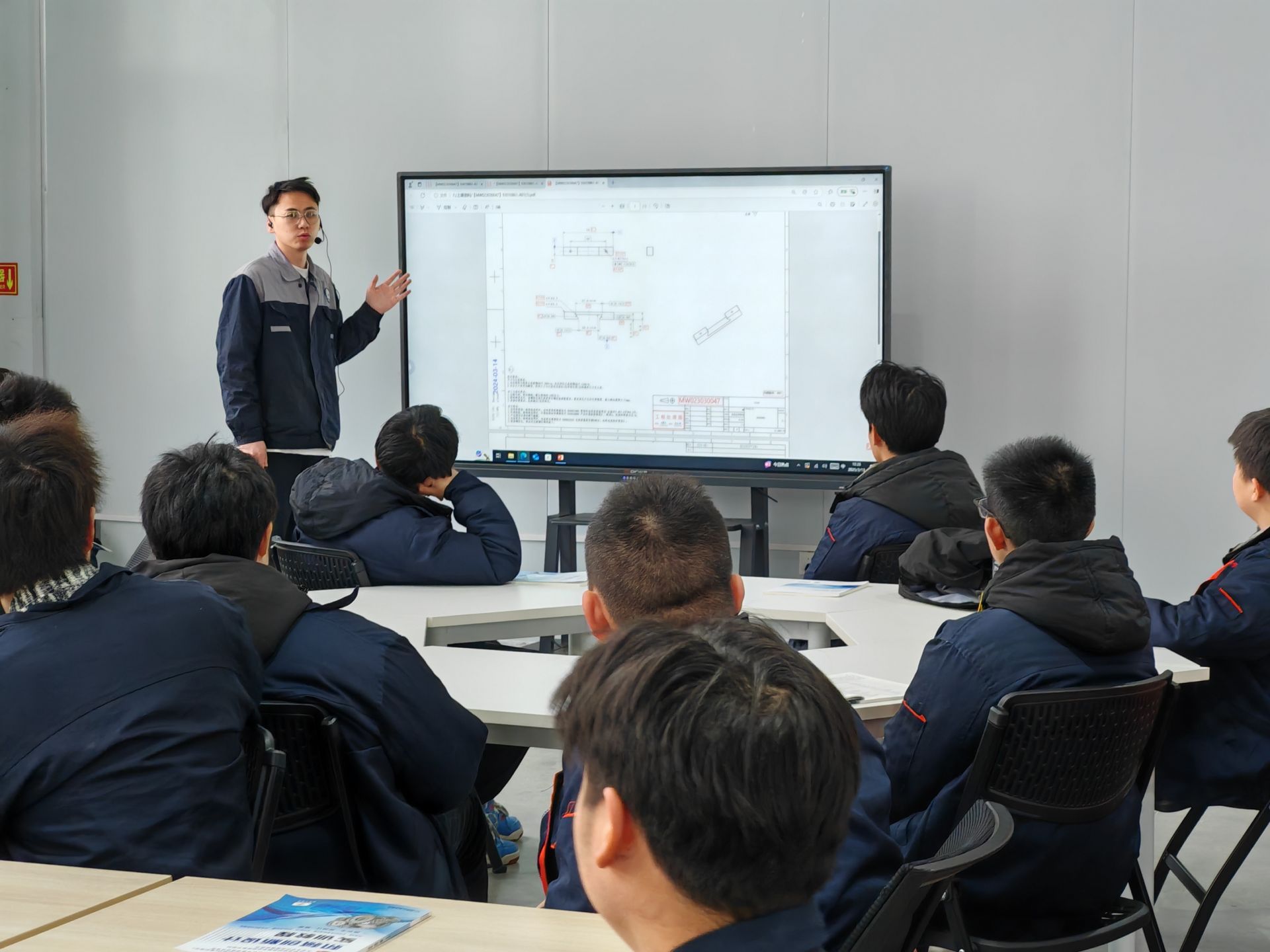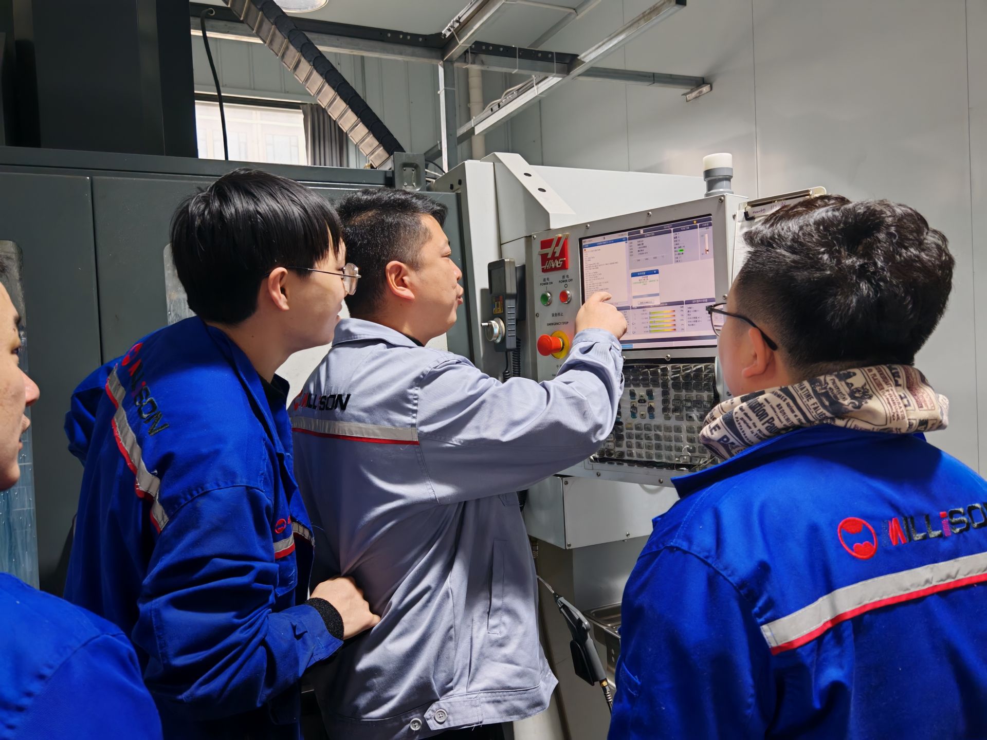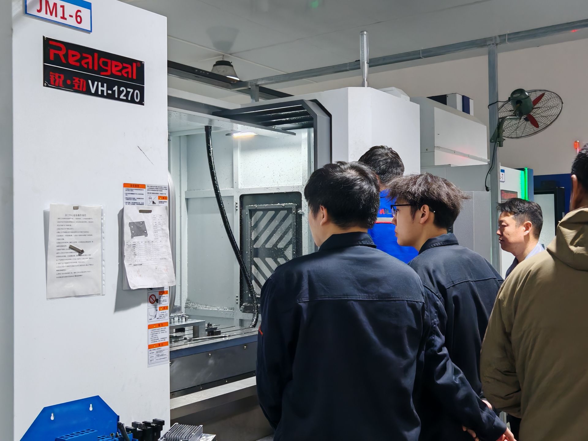 “你们看,这件结构外壳周围还有毛刺,还需继续优化工艺......”在数控机床旁,襄阳科技职业学院智能制造学院学生胡长沛和陈坤正在上数控加工课,美利信技术部项目经理蔡文静手持一件车载结构外壳,正为他们详细讲解注意事项。之后,他们和生产部部长魏昆一起调整机床参数,进行生产前的调试。