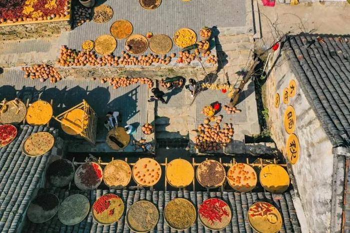 拥有650余年历史的古村落大余湾晒秋节盛况。来源:黄陂融媒