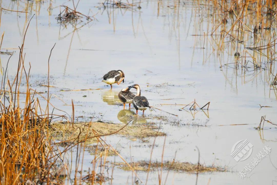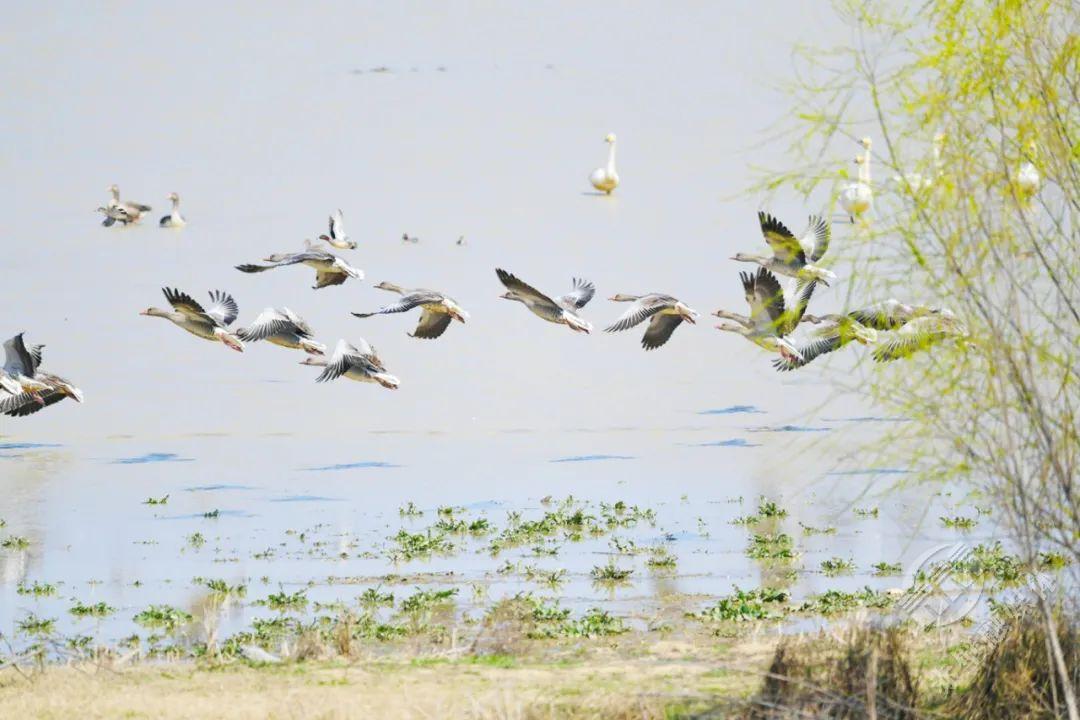 清晨,第一缕阳光洒在黄盖湖湖面,波光粼粼中,成群的候鸟或优雅地游弋,或展翅翱翔,此时按下快门,每一张照片都是绝美的生态大片。黄昏时分,落日余晖将天空染成橙红色,候鸟们在霞光中归巢,这幅画面充满诗意,定会让你沉醉其中。
