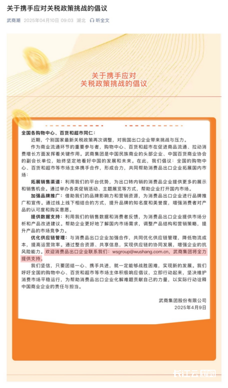 省市商务部门、长江国贸平台、湖北各大零售商联合之下,最近,武商、中百和京东mall的各大卖场内,即将增设出口转内销销售专区,让优质的外贸产品以最快速度上架与消费者见面,为企业提供更多的展销机会。上周,武商集团正式发布倡议书,希望全国的购物中心、百货和超市等市场主体携手合作,形成合力,通过4条举措共同帮助消费品出口企业拓展国内市场。
