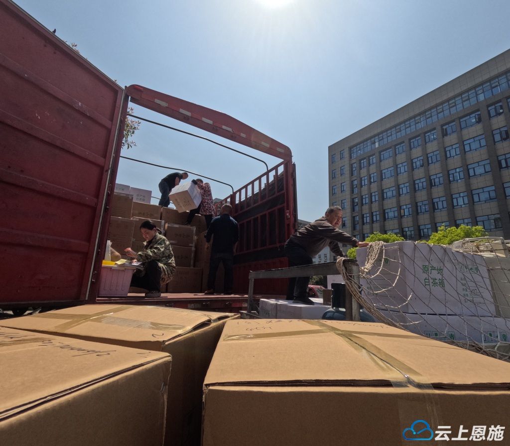 在绿园春茶业的销售门店,销售人员正忙着装车发货。像绿园春茶业这样的咸丰白茶企业,产品发往浙江、西安、上海等地,通过物流车直达市场,每天的干茶发货量可达1000斤。