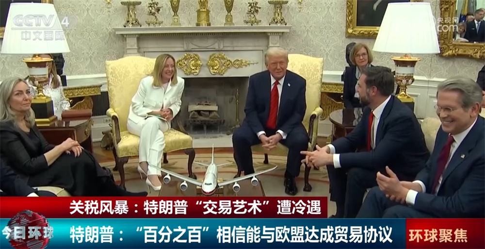 当天,特朗普在白宫与到访的意大利总理梅洛尼进行会晤,他表示,“百分之百”有信心在90天的“对等关税”暂停期结束前与欧盟达成贸易协议。