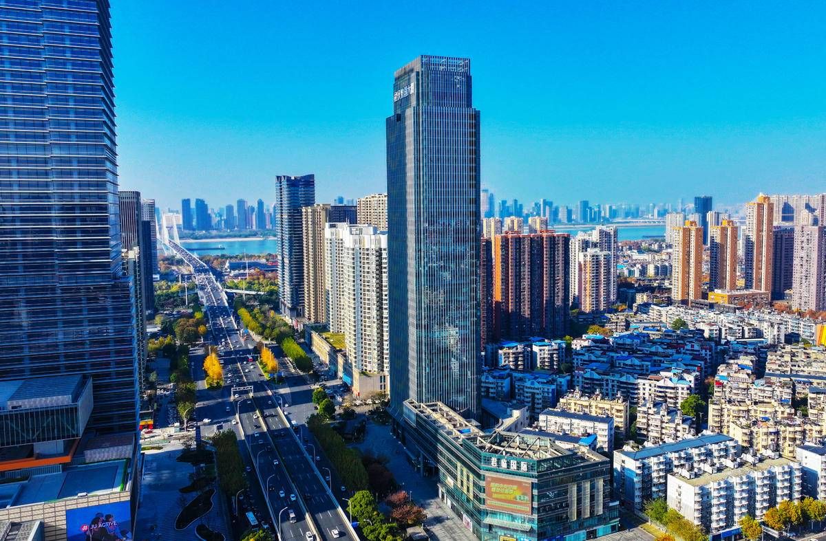 俯瞰星河璀璨的光谷广场。(湖北日报全媒记者 魏铼 摄)
