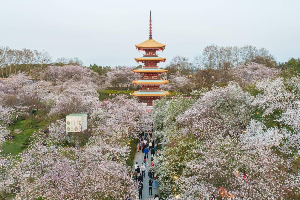 武汉东湖樱花园游人如织。(湖北日报全媒记者 任勇 摄)