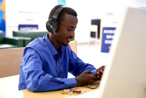 在明亮现代的信息技术阅览室,当地读者正在沉浸式学习。人民网 塔里克·易卜拉欣摄