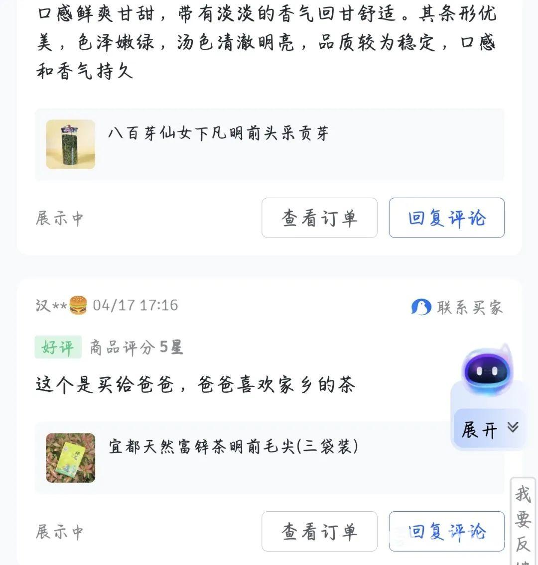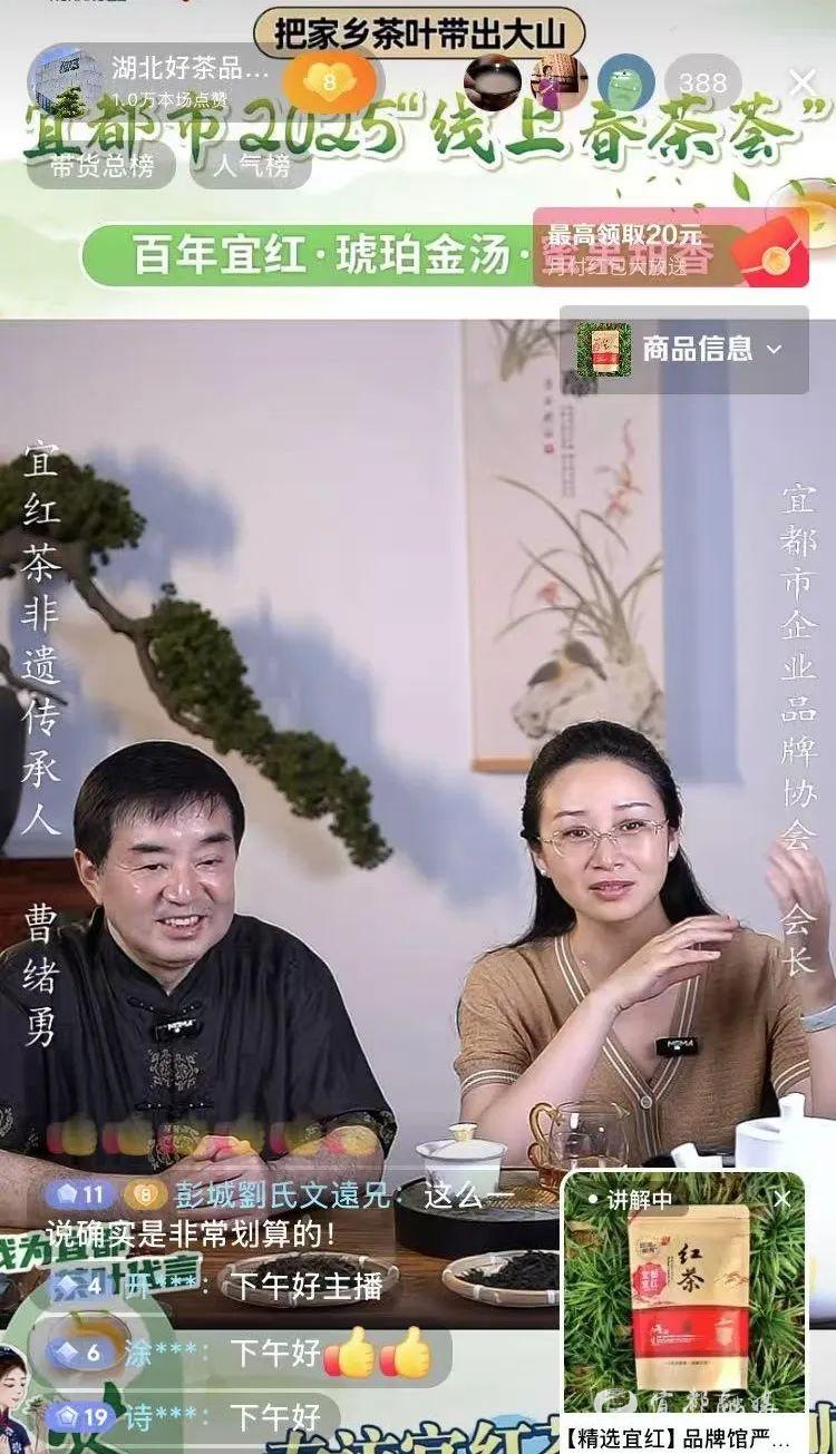 “直播团队时常凌晨还在试茶,确定主推产品,一切努力都值了!”宜都市企业品牌协会会长郭世佳是此次活动的公益主播之一,她展示后台数据时难掩兴奋,“我们有50%以上的订单来自省外市场!”后台数据显示,宜都的茶不仅走进北上广深等一线城市,更实现“西出阳关”的突破。直播间公屏上,“我想复购160单宜红茶”的留言,更印证着市场对于宜都茶叶品质的认可。