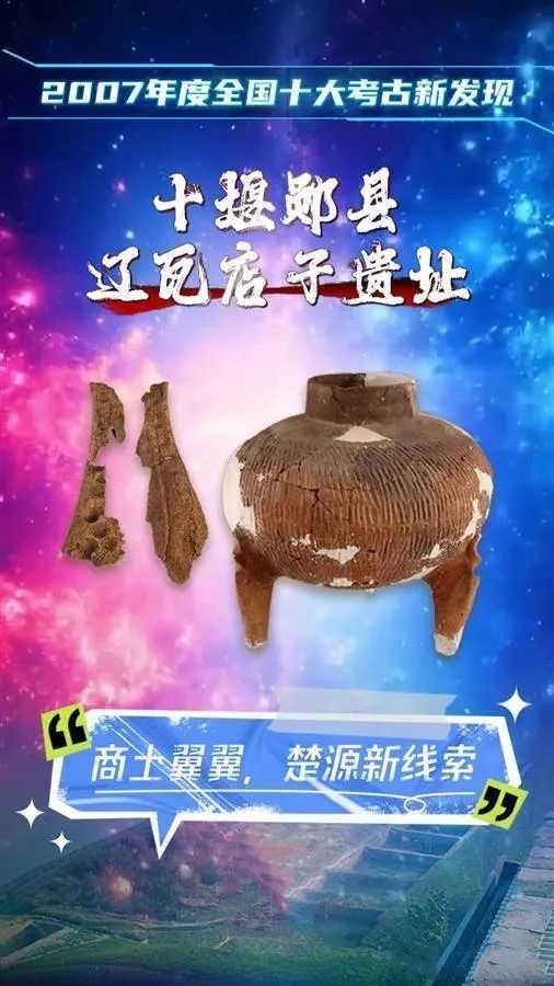 2005-2007年,武汉大学、湖北省文物考古研究所联合发掘了湖北郧县辽瓦店子遗址。遗址中出土了大批新石器时代晚期、夏、商、西周、东周、汉、唐宋等时期遗迹和遗物,其中保存最完好、遗存最丰富的是夏商时期的聚落,清理出文化特征鲜明的房屋、灰坑、墓葬和窑址。这是首次在鄂西北地区发现典型的从二里岗下层到殷墟一期的商文化遗存,对于商代历史、文化、地理等方面的研究都是重要的发现。该遗址地处楚文化起源的核心地带,遗址中的两周遗存为探讨早期楚文化的起源和发展提供了重要线索。