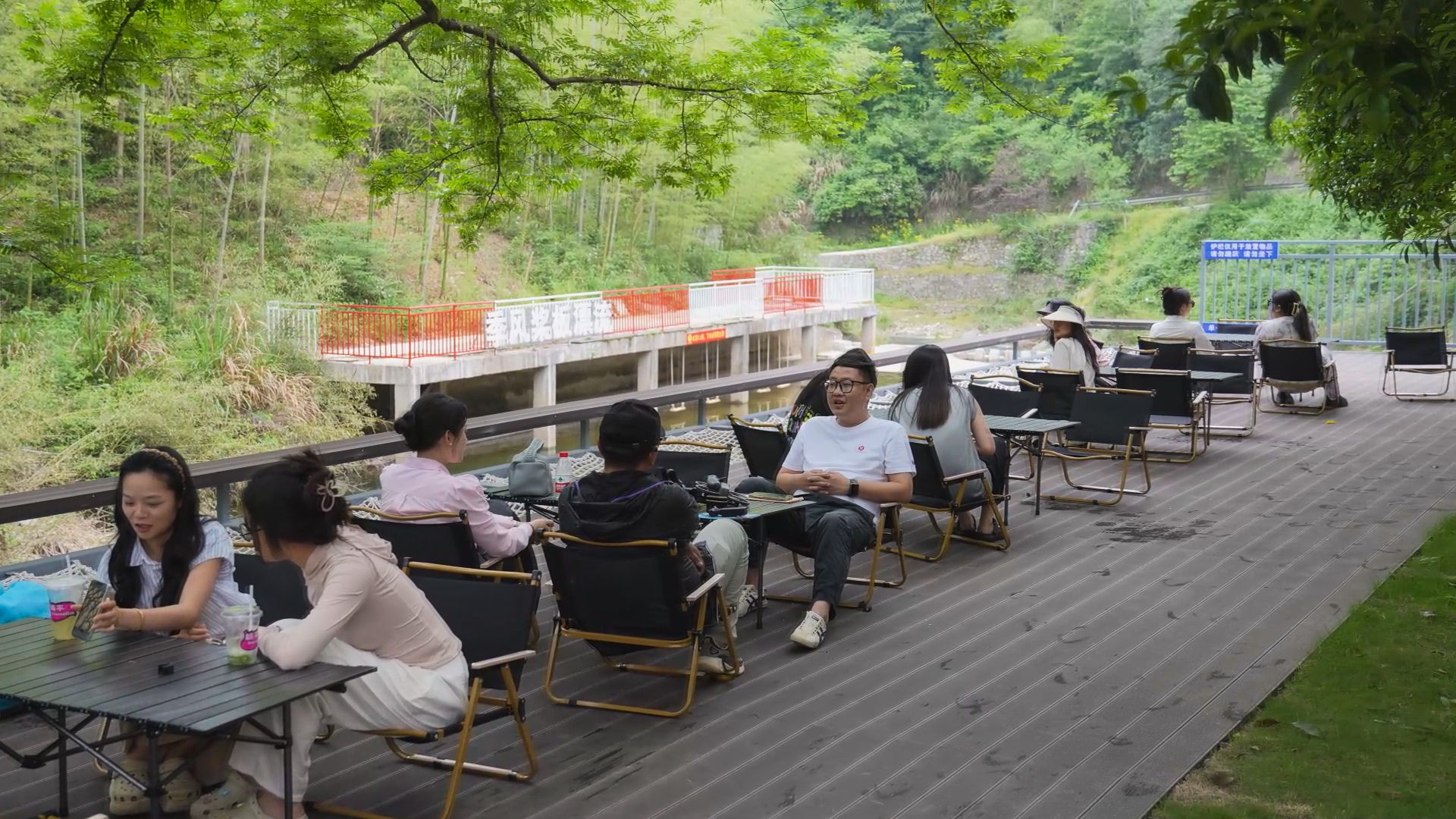 “刚刚漂流完坐在这里休息,周围都是青山绿水,环境很好,感觉很放松。”游客魏女士笑着说。