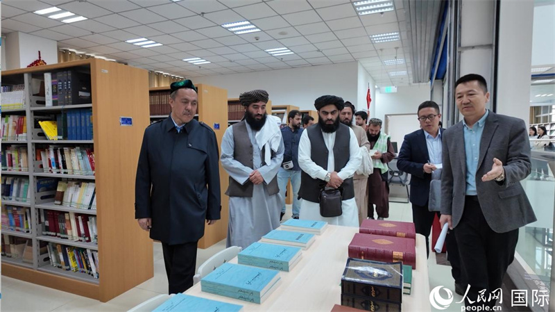 代表团在新疆伊斯兰教经学院图书馆参观。人民网记者 章凯风摄