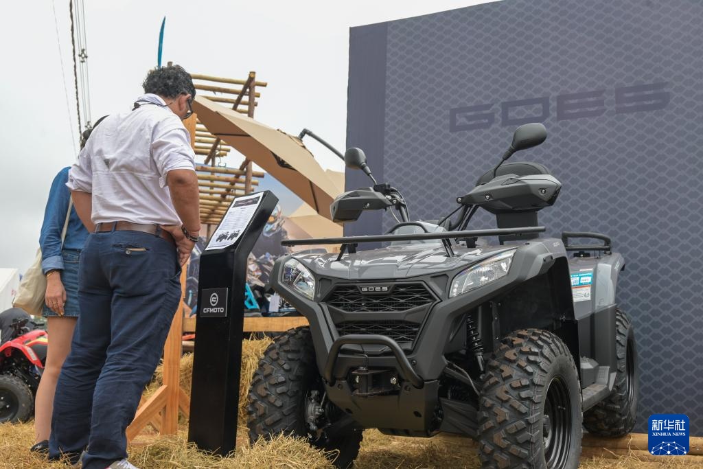 4月29日,在巴西圣保罗州里贝朗普雷图市举行的2025年巴西农业科技展上,参观者观看春风动力展示的全地形车。新华社记者 陈昊佺 摄