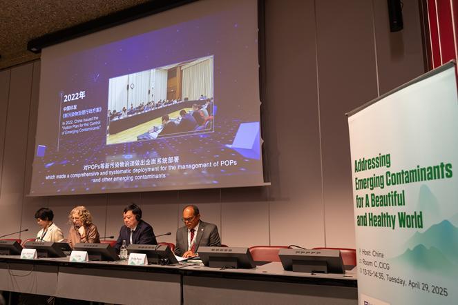 中新网5月2日电 2025年4月29日,“致力新污染物治理,建设美丽健康世界”边会在《巴塞尔公约》《鹿特丹公约》和《斯德哥尔摩公约》(以下简称化学品和废物三公约)2025年缔约方大会期间成功举办,会议由生态环境部对外合作与交流中心(以下简称中心)主办。生态环境部副部长李高、联合国环境署执行主任英格·安德森、化学品和废物三公约执行秘书罗尔夫·帕耶出席边会并致辞,生态环境部固体废物与化学品司负责同志主持会议,来自化学品和废物三公约缔约方和相关国际组织等100余人参加了会议。