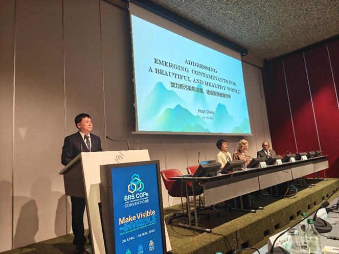 化学品和废物三公约2025年缔约方大会在瑞士日内瓦召开,会期为2025年4月28日至5月9日,大会主题为“让无形变得有形:化学品和废物的健全管理”。超过150个缔约方国家和观察员国家、联合国环境规划署、联合国开发计划署、联合国工发组织、全球环境基金秘书处等国际组织、全球化学品和废物三公约区域技术中心以及非政府组织的2000余位代表参会。大会期间,中心还举办了主题为“无形污染 有形行动:中国履约成效与实践” 展览,分享了中国推动《斯德哥尔摩公约》履约和健全化学品和废物环境管理的成功经验和案例。