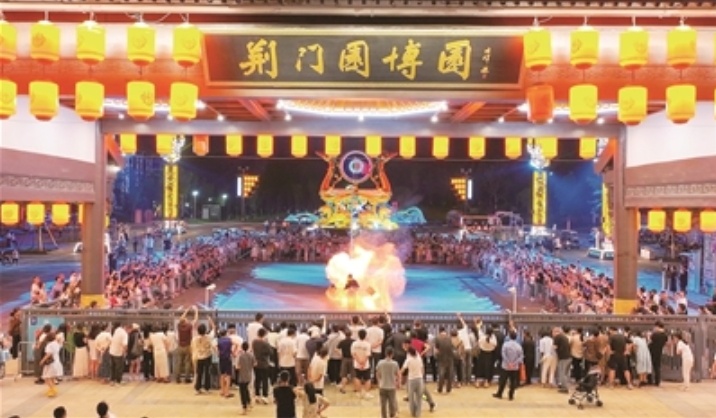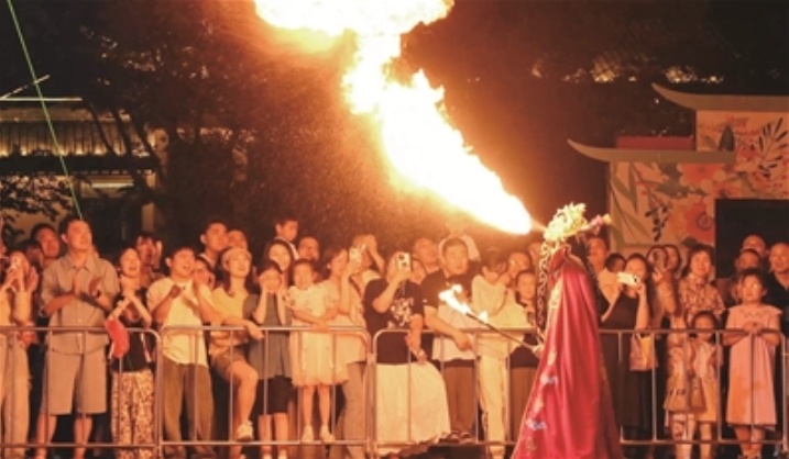 5月2日,荆门园博园推出的火壶系列特技表演吸引了众多游客观看。“五一”小长假期间,我市深入挖掘本土资源,丰富文旅产品供给,提升服务质量,推出一系列具有特色和创意的文旅产品,各旅游景区都迎来旅游热潮。(郑波 刘晓明 摄)