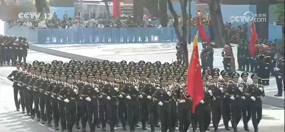 在现场,中国仪仗队员整齐划一的昂扬军姿,受到越南民众的热烈欢迎。此次中国仪仗队跨境参加越南庆典活动,充分彰显和传递了中越两军深厚友谊和互信。中国援越高级军官后代、老兵及家属代表也受邀参加阅兵式观礼。