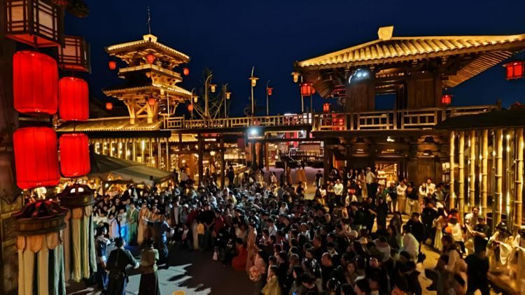 明显陵文化旅游景区每日推出凤栖花朝节、五月游园记、昼歌夜舞等活动,每天举办各类演艺活动50余场,单日接待游客最多超过5万人。
