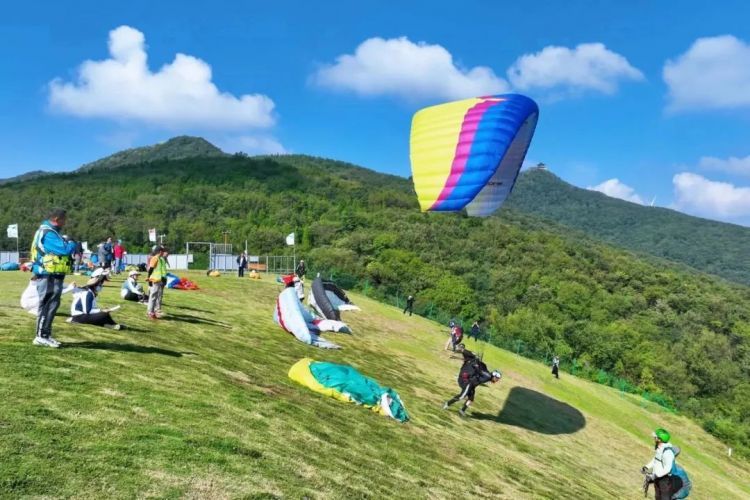 东宝区举办“圣境东宝·五一翱翔季”2025年荆门市第四届滑翔伞比赛暨青年文化嘉年华系列活动,同步开启抖音直播,发起圣境山空中视角话题互动,游客参与热情高涨。