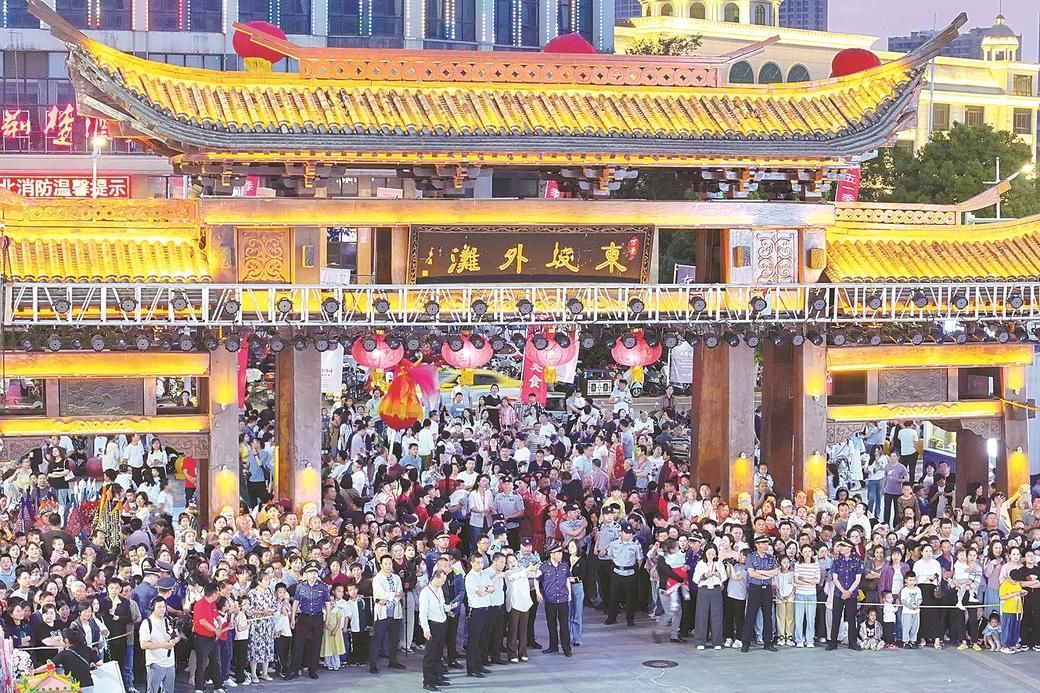 东坡外滩人流如织,商圈文旅活动热闹非凡。 记者 余涛 周伟 摄