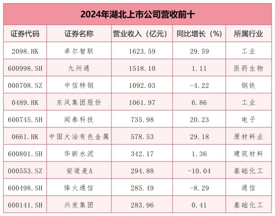 整体来看,有100家湖北上市公司营收实现正增长,占比超五成。