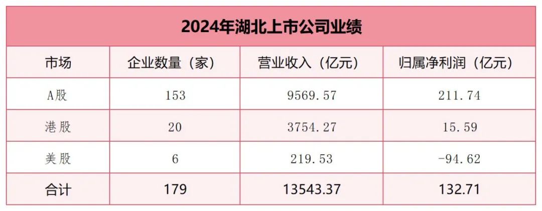 截至5月7日,A股、港股、美股湖北上市公司2024年业绩全部出炉(除天茂集团和益生科技年报推迟发布外),同花顺iFinD数据显示,去重后的179家湖北上市公司,去年实现总营业收入超1.35万亿元。