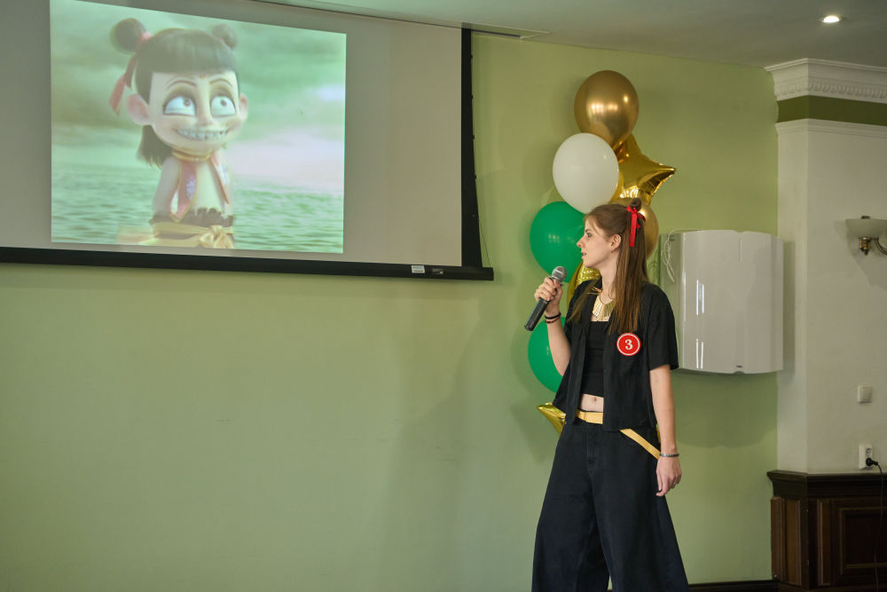 2025年4月10日,第24届“汉语桥”世界大学生中文比赛俄罗斯赛区预选赛10日在符拉迪沃斯托克举行。这是选手为电影《哪吒2》进行配音表演。