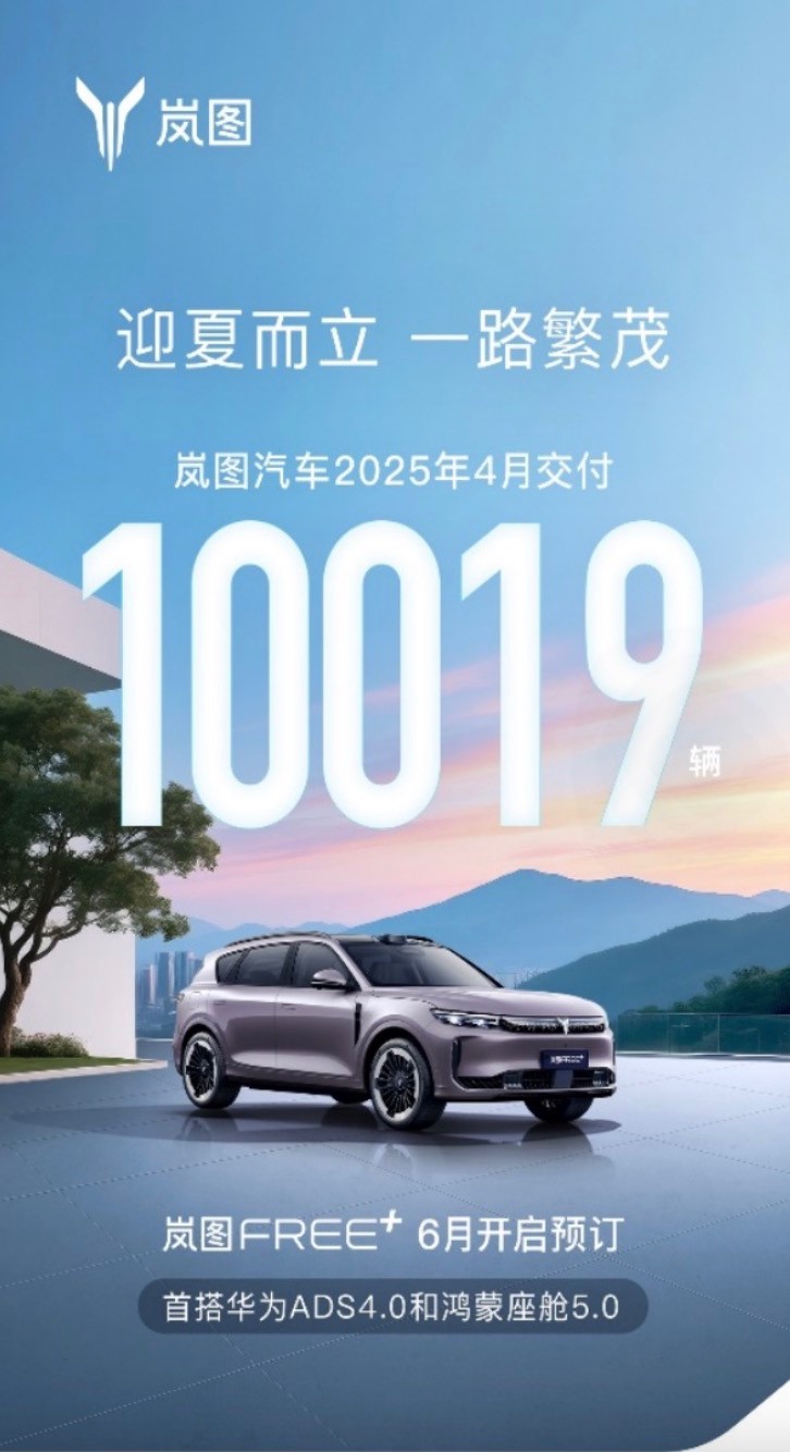 不懈的努力,为岚图带来强劲增长势头:今年1-4月累计销量36053辆,同比增长77%。从2024年累计产销破10万,到仅仅一年后累计产销达成20万辆,坚持技术导向的岚图汽车,正大步迈进跨越式发展的新阶段,开启发展“加速度”。此前,岚图汽车CEO卢放对外透露,2025年岚图汽车将推出4款以上全新车型或改款车,并且全系将搭载华为乾崑智驾,为用户提供好用、敢用、易用、爱用的驾乘新体验。