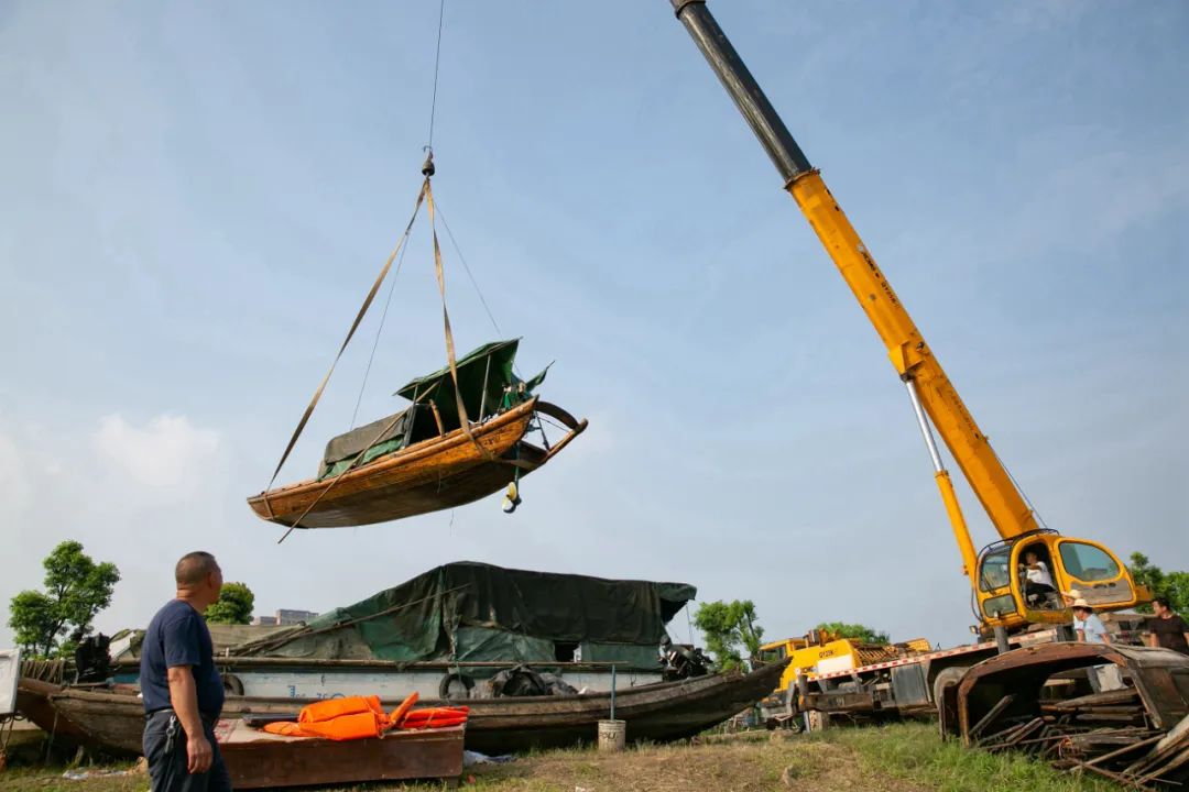 2020年7月20日。监利市容城镇最后一批捕捞船舶集中拆解。何伟 摄