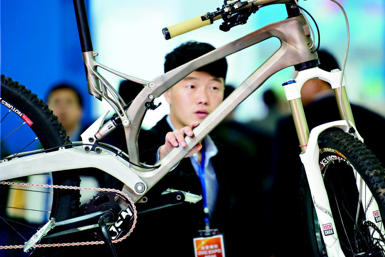 第12届光博会上展示的世界首款3D打印金属自行车。(资料图)